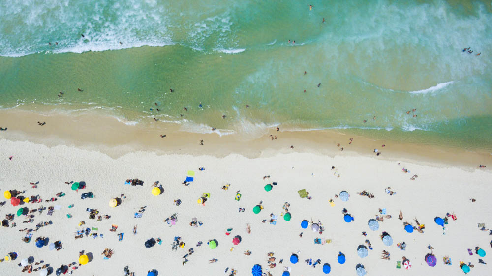 Um ângulo diferente da praia de Copacabana no Rio de Janeiro.