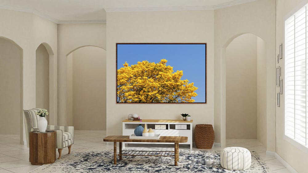 Temos quatro medidas e três opções de cor de moldura para todos os quadros decorativos.
