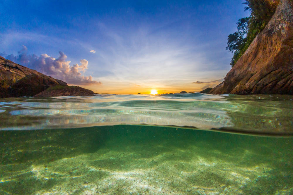 Sol de verão na ilha da Cotunduba situada no Rio de Janeiro próximo a Baía de Guanabara.