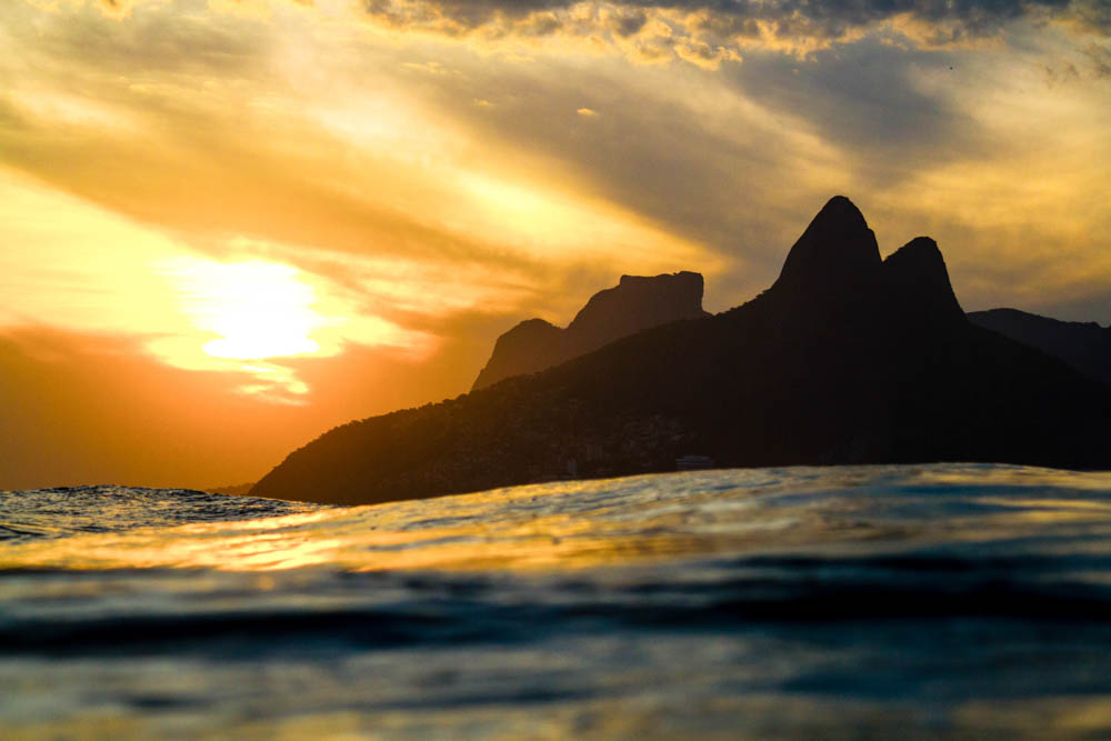 Pedra da Gávea, dois irmãos e um céu dourado.