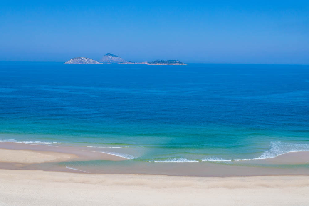 Praia de Ipanema sendo vista de um ângulo diferenciado.