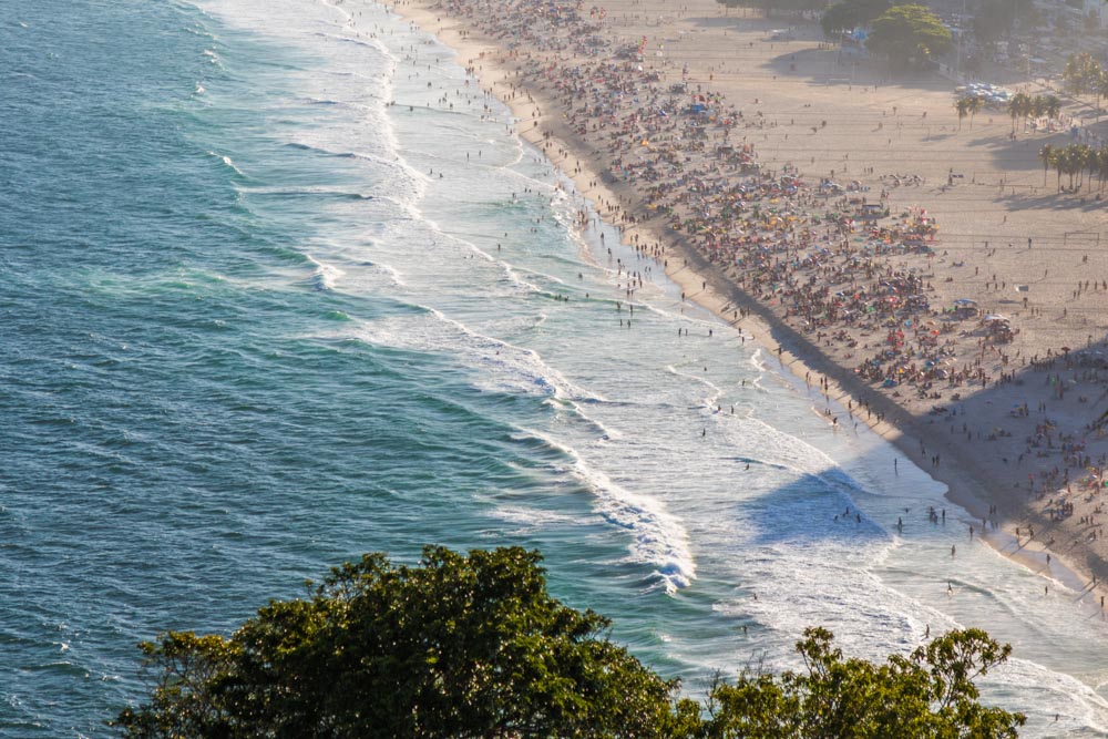 Um ângulo diferenciado de se ver a praia do Leme no Rio de Janeiro.