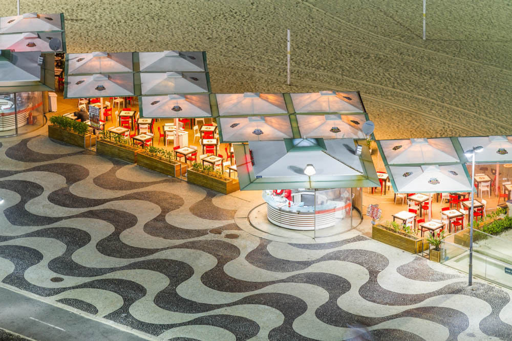 Uma Marca Registrada da orla do Rio de Janeiro, são suas calçadas de pedra portuguesa e seus quiosques.