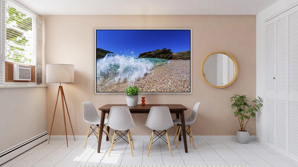 Temos quatro medidas e três opções de cor de moldura para todos os quadros decorativos.